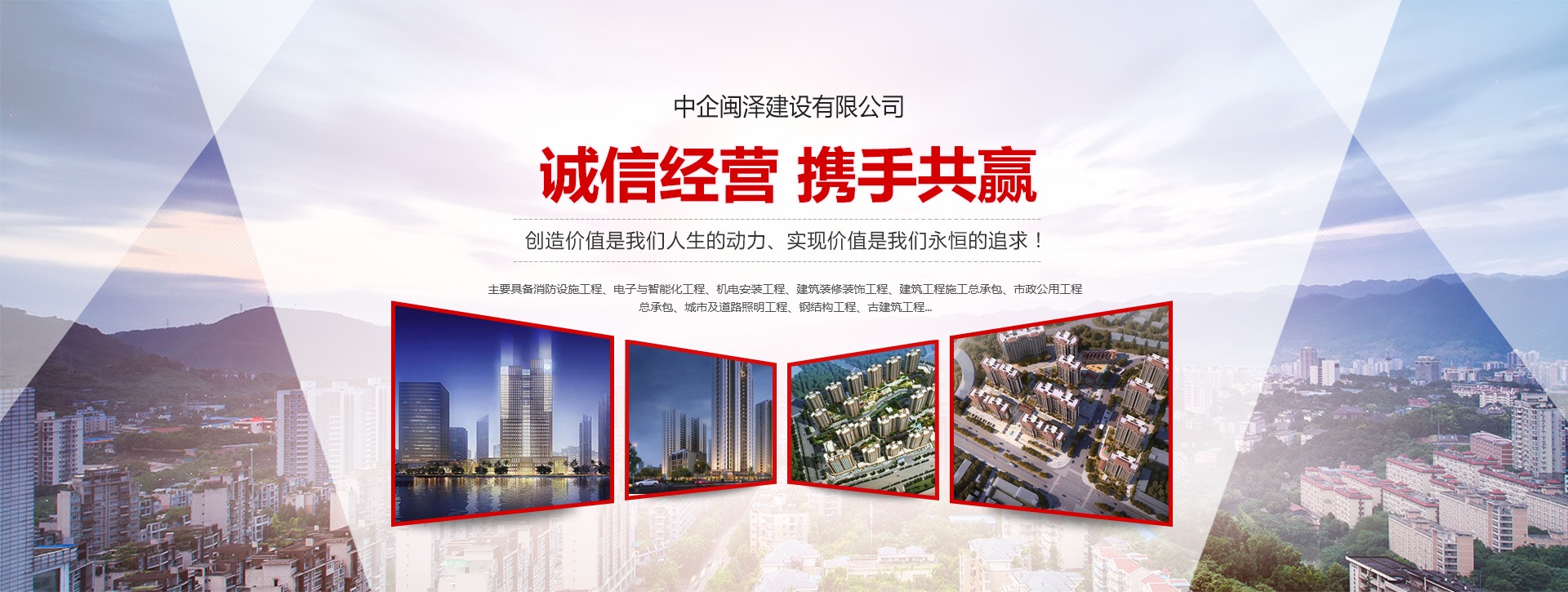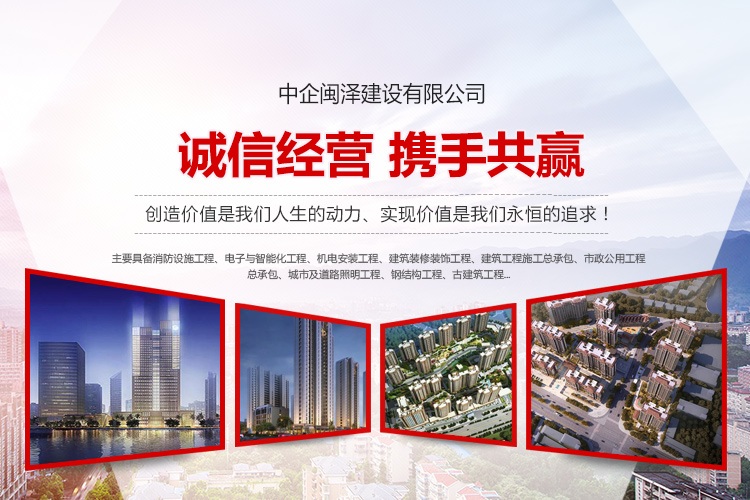 中企閩澤建設(shè)有限公司成立于1995年,注冊(cè)資金伍仟萬(wàn)元整,目前為壹級(jí)資質(zhì)企業(yè),主要具備消防設(shè)施工程、電子與智能化工程、機(jī)電安裝工程、建筑裝修裝飾工程、建筑工程施工總承包、市政公用工程總承包、城市及道路照明工程、鋼結(jié)構(gòu)工程、古建筑工程、環(huán)保工程、城市園林綠化工程、建筑幕墻工程、工程設(shè)計(jì)與施工;消防工程檢測(cè);消防設(shè)施維護(hù);施工勞務(wù);消防設(shè)備領(lǐng)域內(nèi)技術(shù)研發(fā)等資質(zhì)。公司成立以來(lái),一步一個(gè)腳印,建立了嚴(yán)格的企業(yè)管理制度和完善的質(zhì)量保證體系,嚴(yán)格規(guī)范遵守操作流程,創(chuàng)業(yè)精神和“誠(chéng)信、務(wù)實(shí)、發(fā)展、共贏(yíng)”的企業(yè)精神,積極倡導(dǎo)企業(yè)文化,把以人為本的理念貫穿于公司發(fā)展的全過(guò)程。
